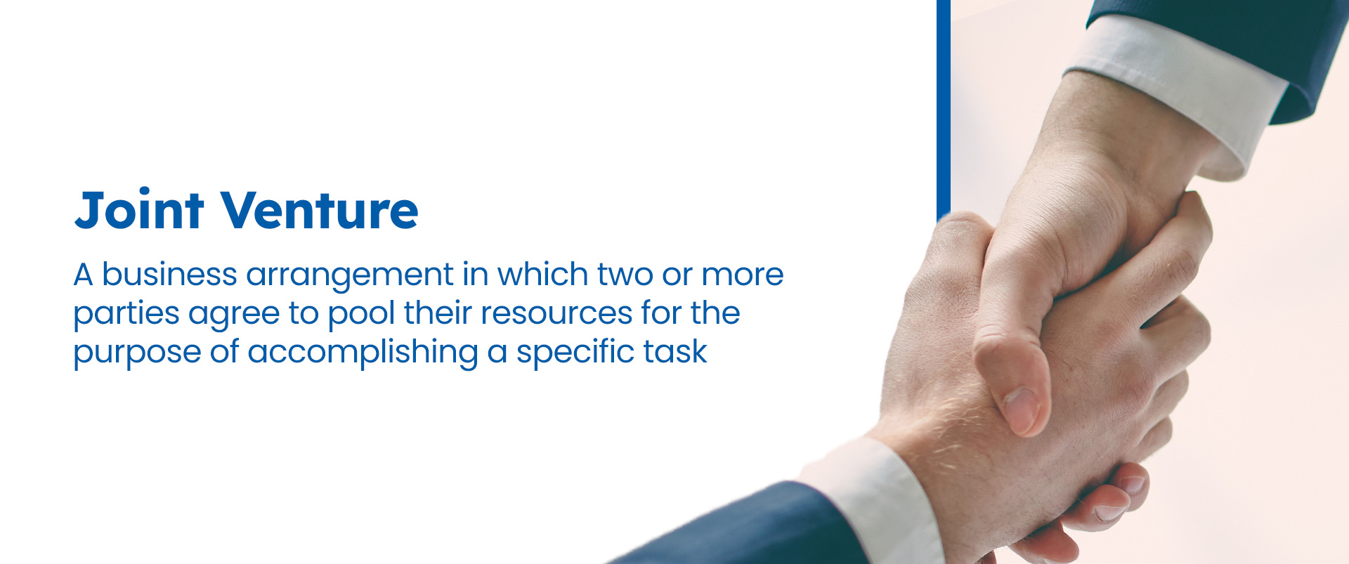 A Joint Venture is a strategic partnership between two or more businesses or entities that collaborate on a specific project or business activity.