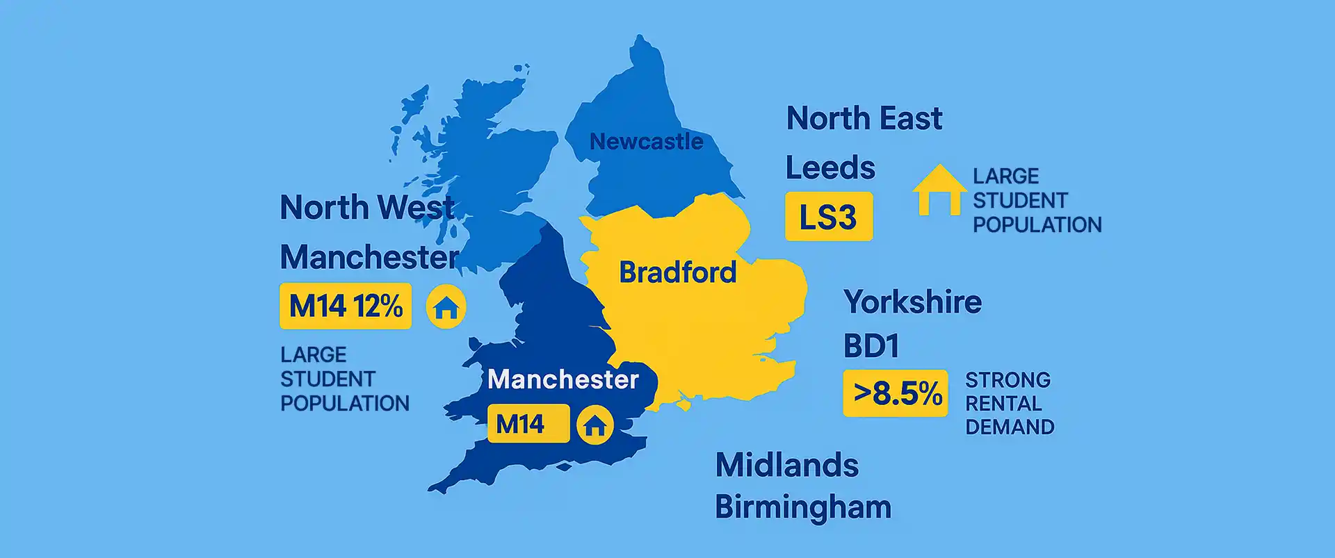 Cities like Sunderland and Newcastle are leading with high yields, driven by affordable property prices and strong rental demand.